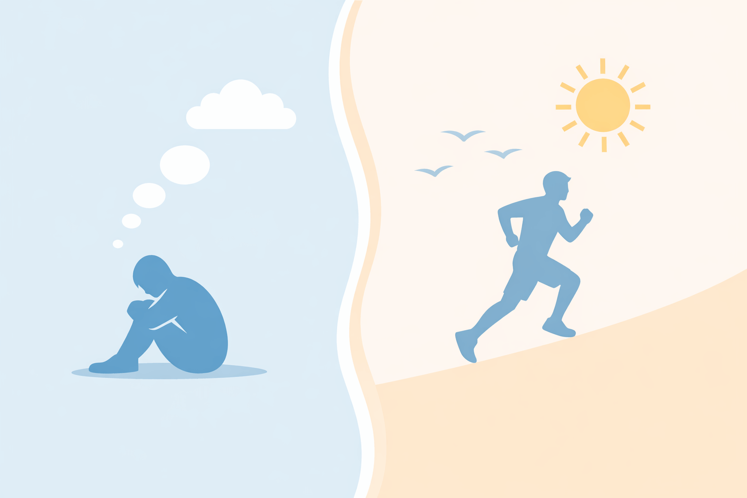 要は、息が上がる運動すると、「自分の思考」にかまってられなくなるというか、強制的に自分からフォーカスがずれるわけですよ。