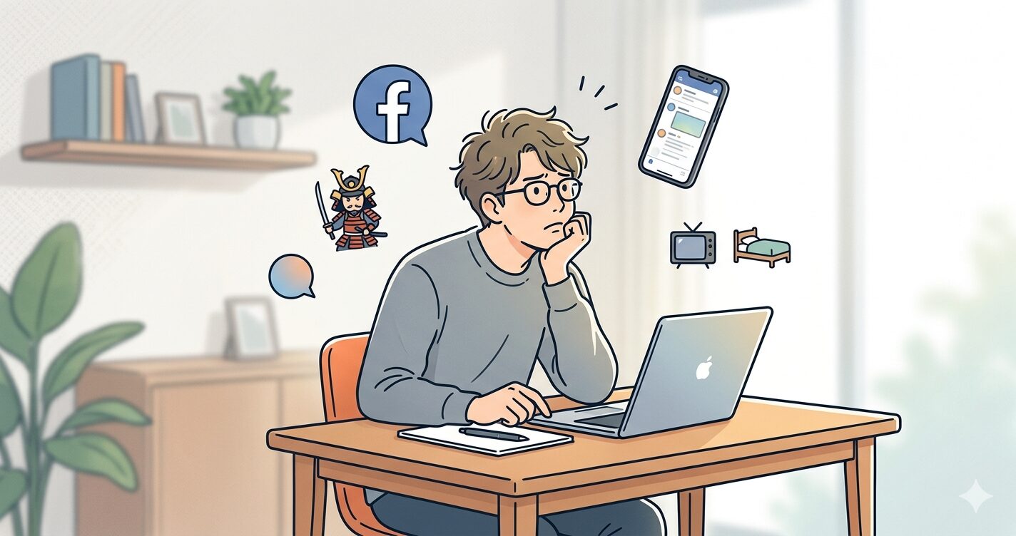 でも、そうやってブログを書くのがイヤになったら、ガマンして書き続けようとはせず、フェイスブック見たりとか、すぐ他のことをやるんです。
