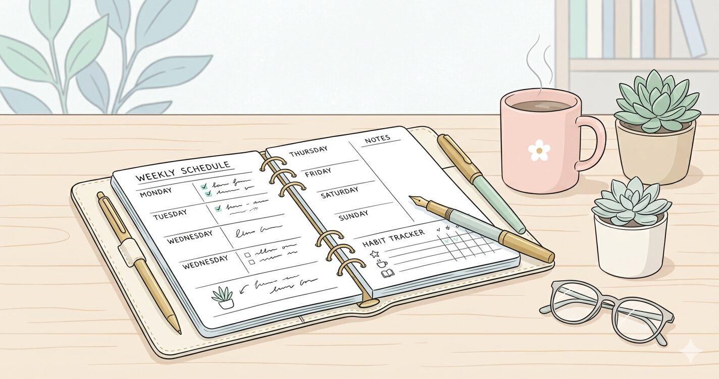 前は手帳に、『この時間は○○する!』 みたいに、時間ごとに細かく予定を書き込んでいたんですけど、結局できなくて・・・。